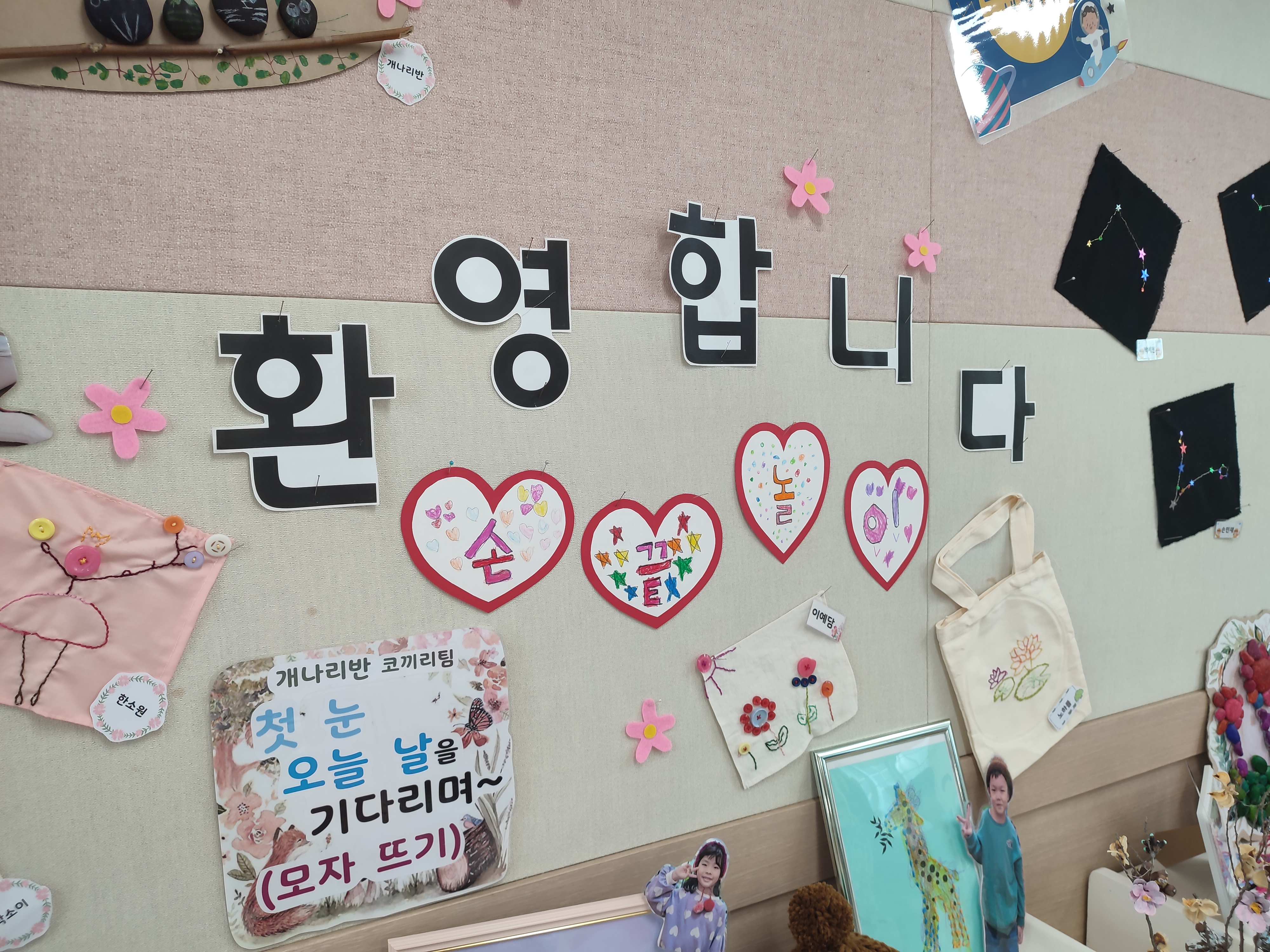 그럼 아이들의 작품인 손끝놀이 전시회와 교실 내부들을 한번 보도록 하겠습니다.