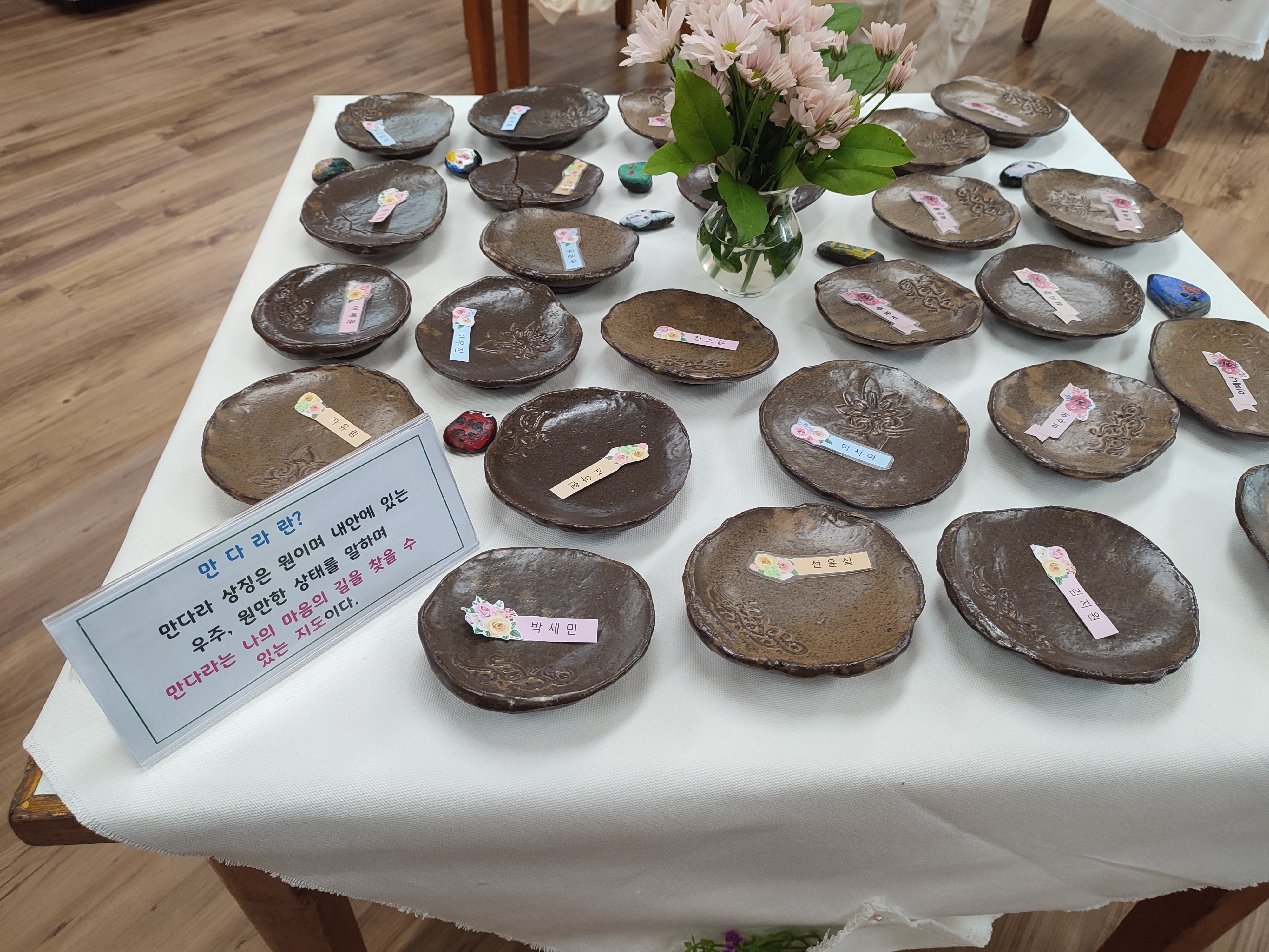 아이들이 엄마와 함께 만든 만든 접시들이네요.