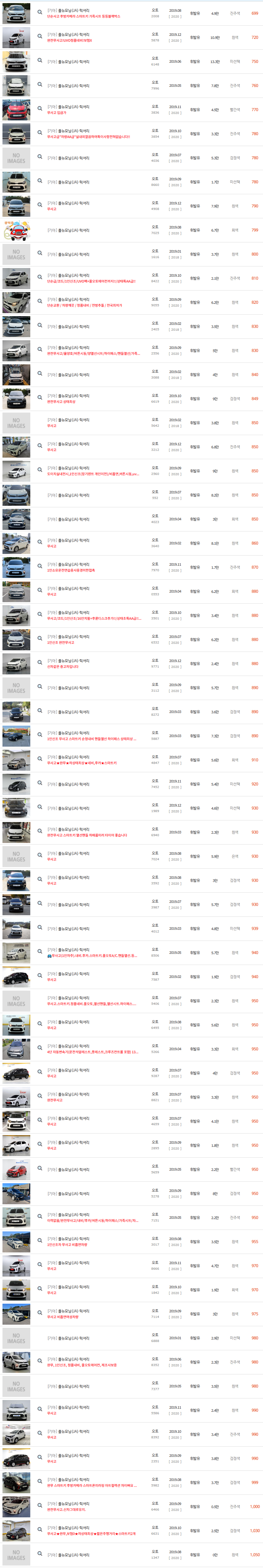 그럼 현재 중고차매매사이트에서 판매되고 있는 2019년식 기아 모닝 중고차 가격 시세표를 알아보도록 하겠습니다.