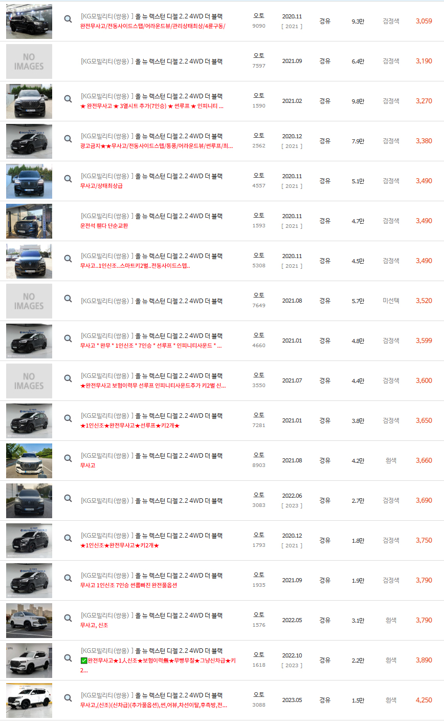 현재 중고차매매사이트에서 판매되고 있는 중고차 가격은 3,230만원부터 3,690만원까지 보이고 있습니다.