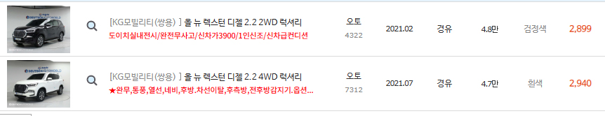 그럼 현재 중고차매매사이트에서 판매되고 있는 올뉴 렉스턴 중고차가격을 알아보도록 하겠습니다.