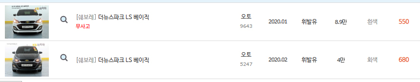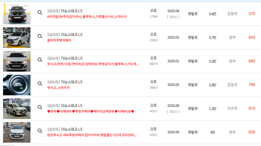 2020년식 스파크 LS 베이직의 중고차 판매 리스트가 되겠습니다.